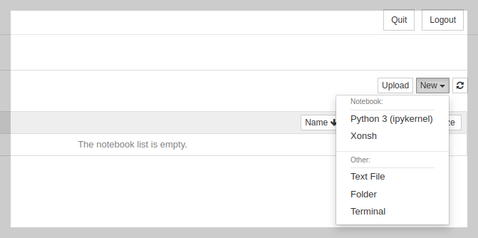 주피터 노트북 생성은 화면 우측 'New > Python3(ipkernel)'을 선택합니다. 물론 텍스트 파일과 폴더 생성도 가능합니다. ipynp는 Jupyter Notebook에서 구동하는 파일을 의미합니다.