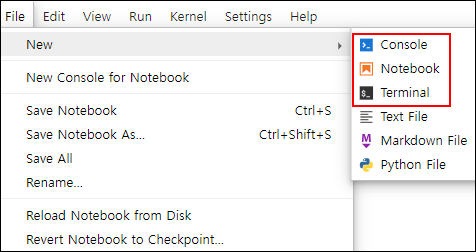 주피터 노트북에서 파일 메뉴에서 제공되는 "Console"과 "Terminal"의 차이점에 대해 알아봅니다.