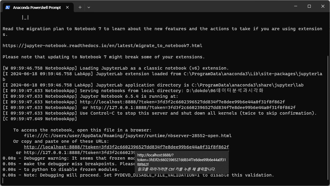 아나콘다 커맨드로 노트북을 시작