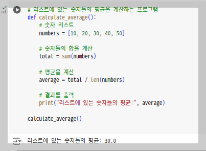 - 리스트에 있는 숫자들의 평균을 계산하는 프로그램을 작성해 보세요.