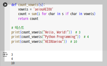 를 작성하세요. - 주어진 문자열에서 모음의 개수를 세는 함수