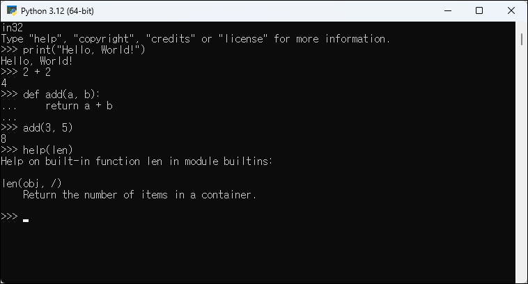 - Python 설치 시 기본으로 제공되는 IDLE을 실행하여 인터랙티브 셸을 사용할 수 있습니다.