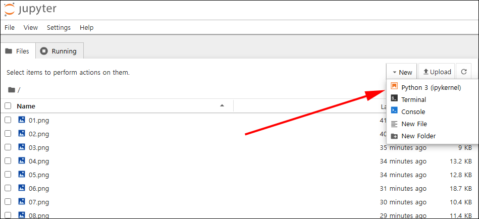New버튼을 클릭하고,Python 3을 선택하여 새 노트북을 생성합니다. - 노트북이 열리면 셀 단위로 코드를 입력할 수 있는 인터페이스가 나타납니다.