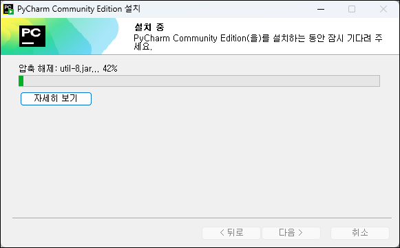 pycharm-community-<version>.exe파일을 실행합니다. - PyCharm 설치 마법사가 실행됩니다.