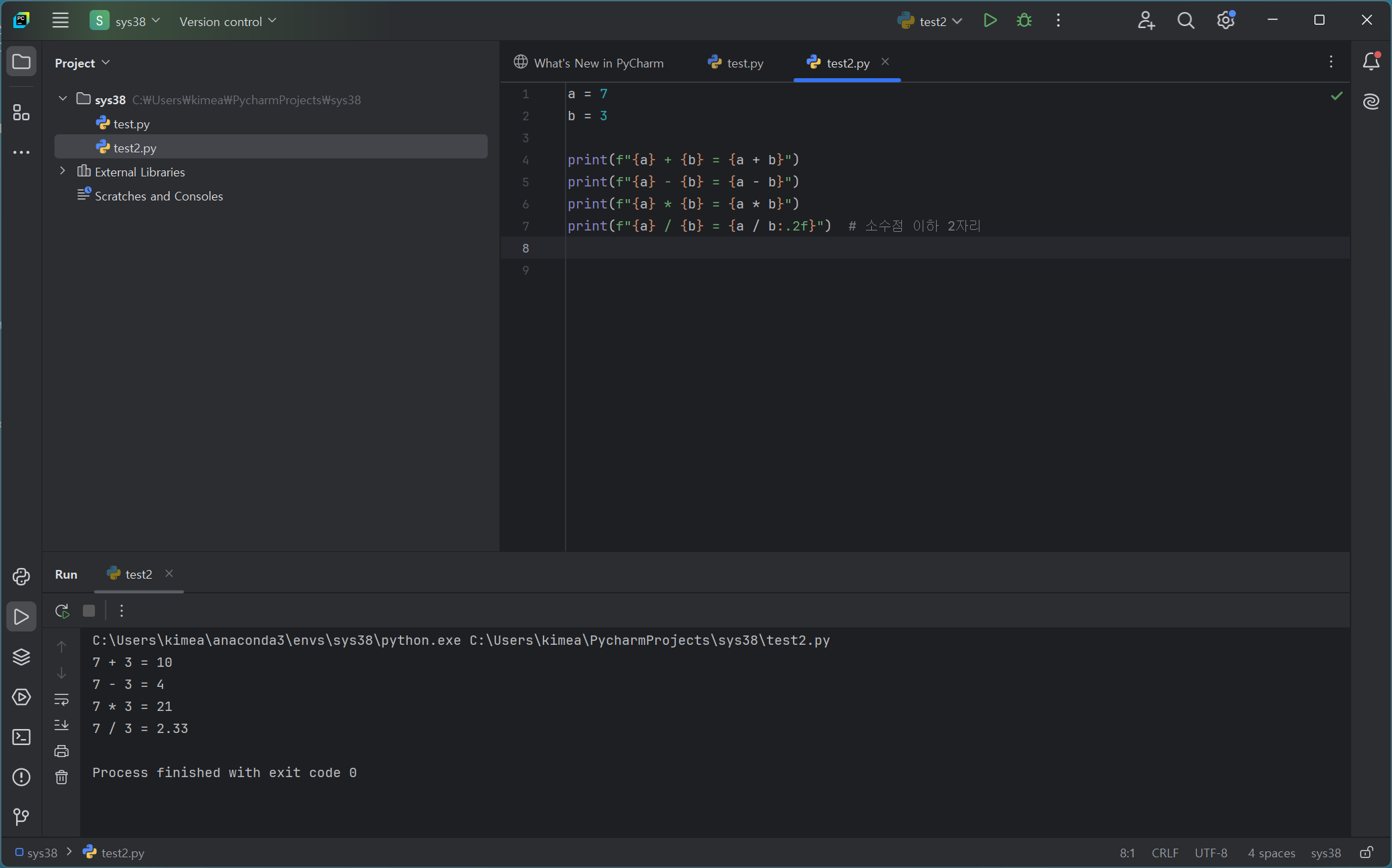 2. f-string을 이용해 사칙연산 결과를 포함한 문자열을 출력하는 코드를 작성하세요.