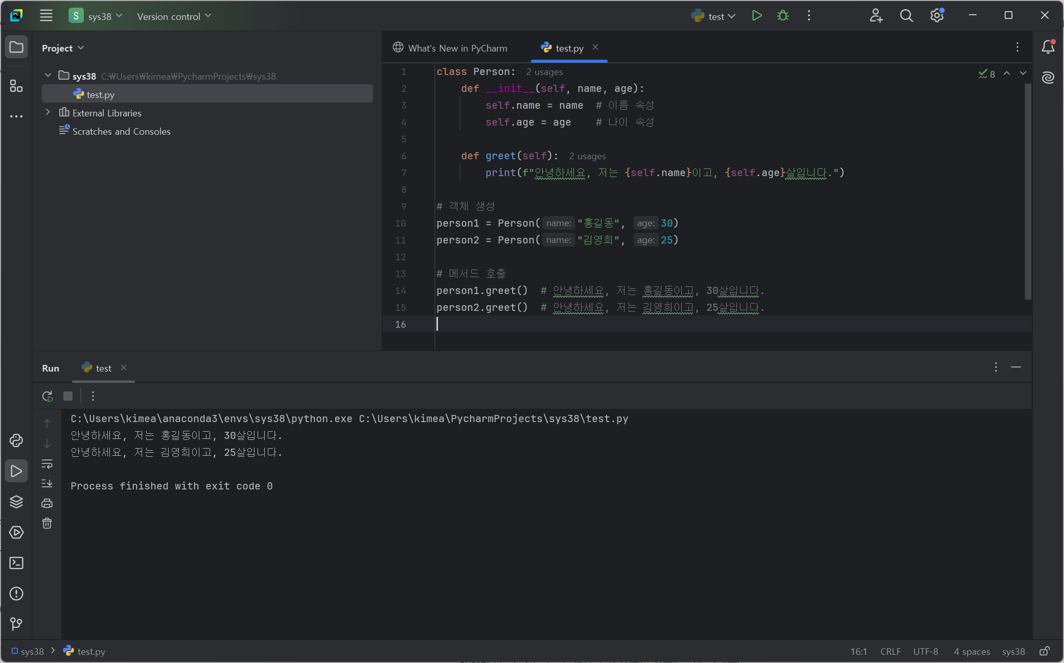person1.greet() # 안녕하세요, 저는 홍길동이고, 30살입니다.