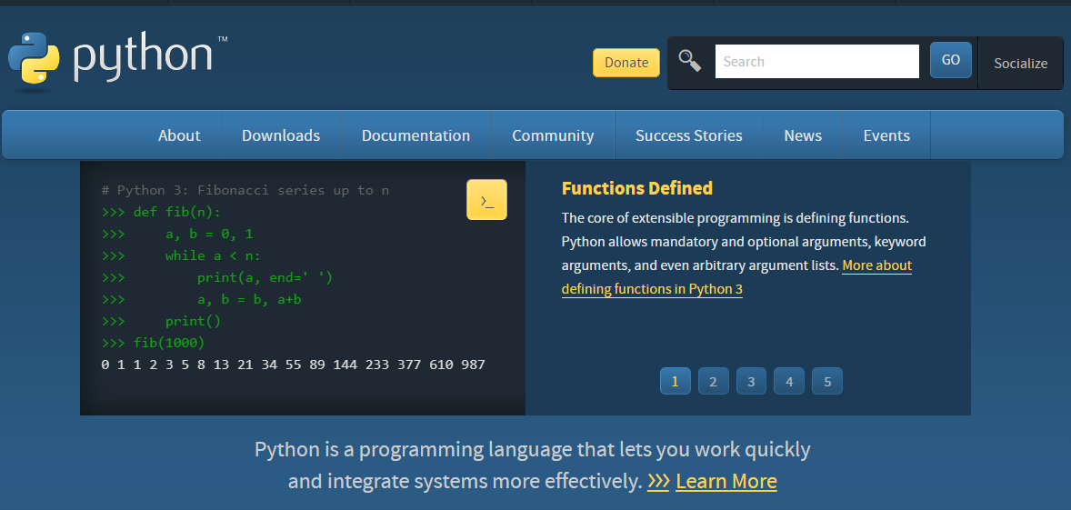파이썬 설치부터 합니다. 최신 버전을 받기 위해 파이썬 공식 홈페이지를 접속합니다. 자신의 플랫폼이 윈도즈라면 윈도즈용을 다운로드합니다.