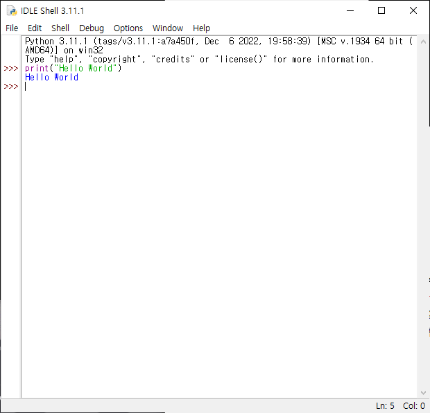 파이썬 쉘 IDLE