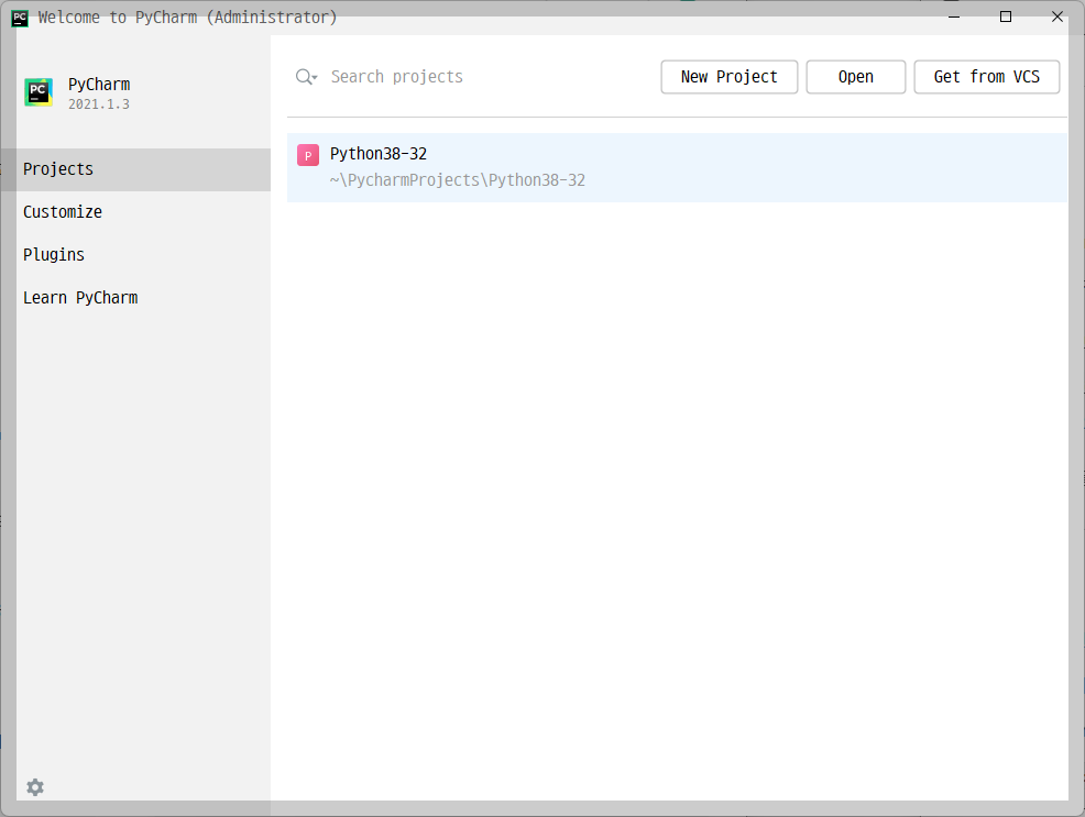 - PyCharm 시작 화면에서 해당 프로젝트를 마우스 오른쪽 클릭.