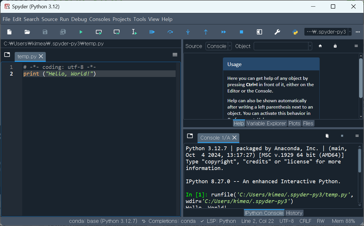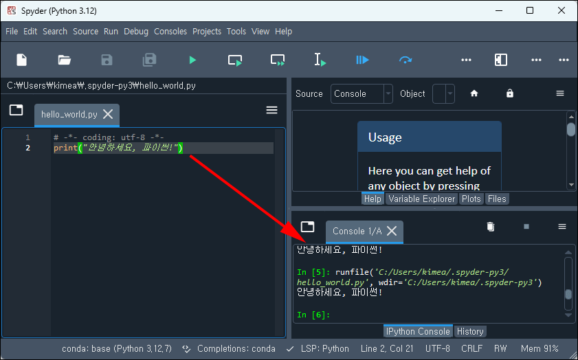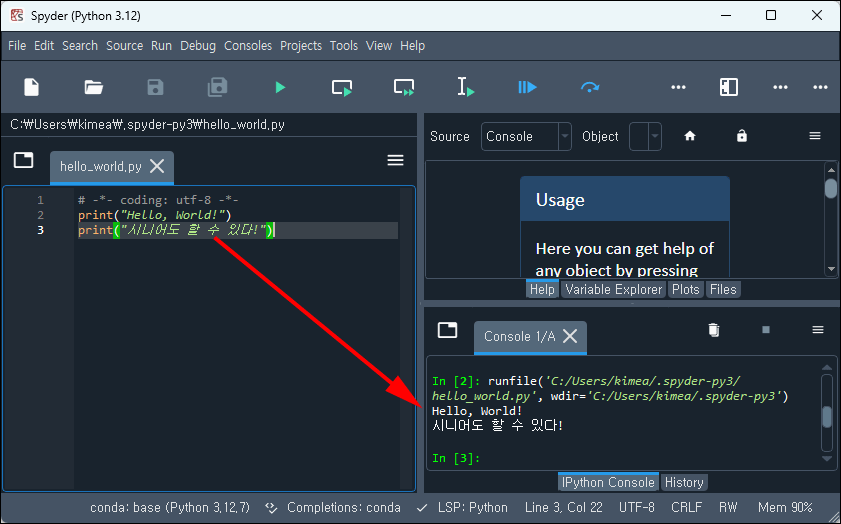Spyder에서 코드 작성과 실행 방법