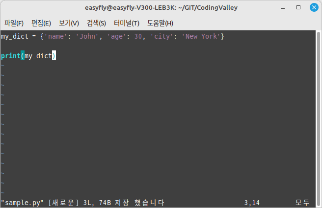 del my_dict['city'] # 'city' 키와 그 값을 삭제