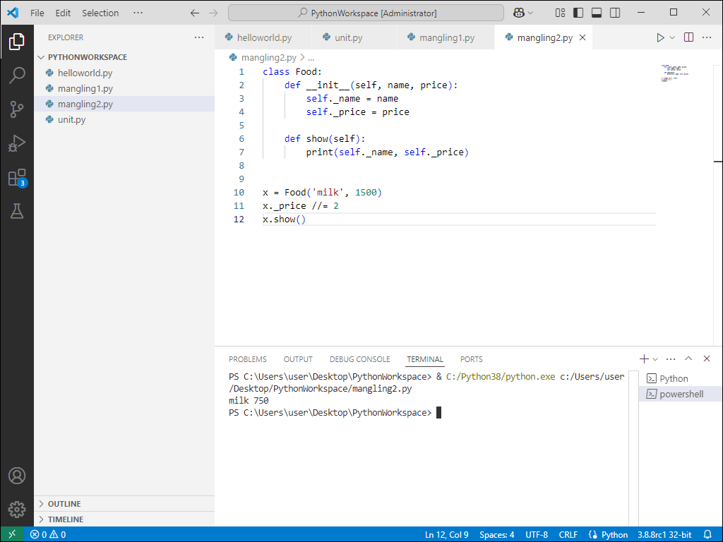 비교 항목 mangling1.py (price) mangling2.py (_price)