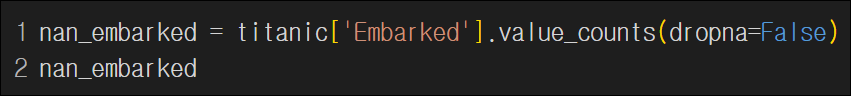 - .value_counts(dropna=False): 각 값의 개수를 세면서 NaN도 포함