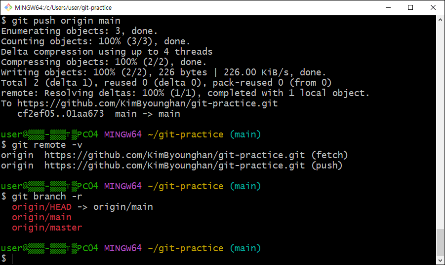 To https://github.com/KimByounghan/git-practice.git