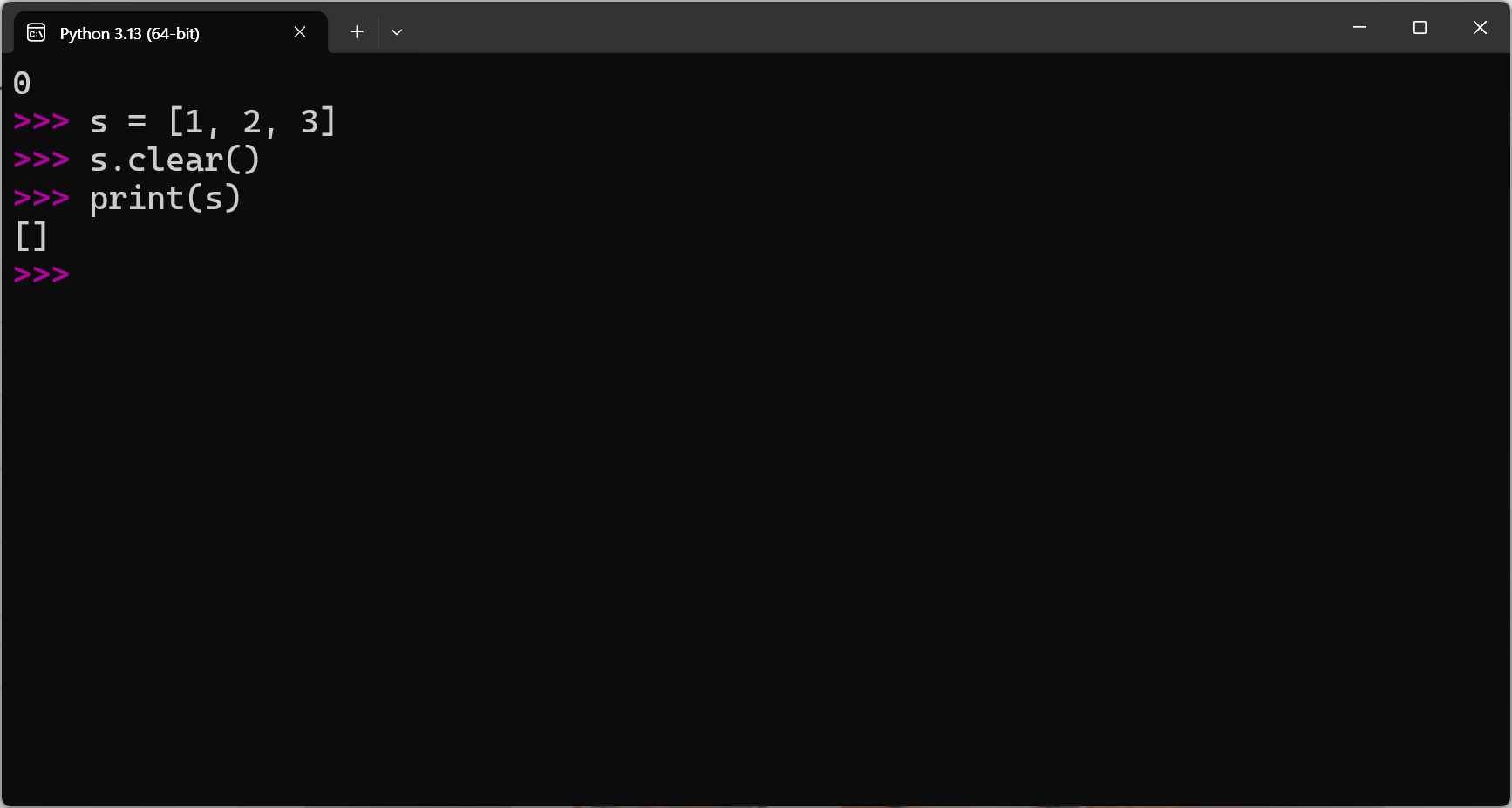 s.pop(0) # 0번 인덱스 삭제 → [2]