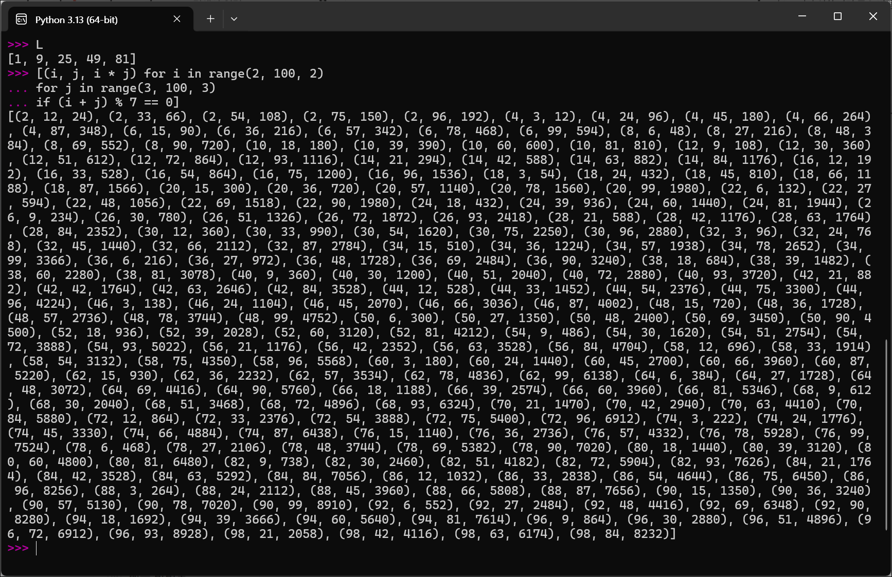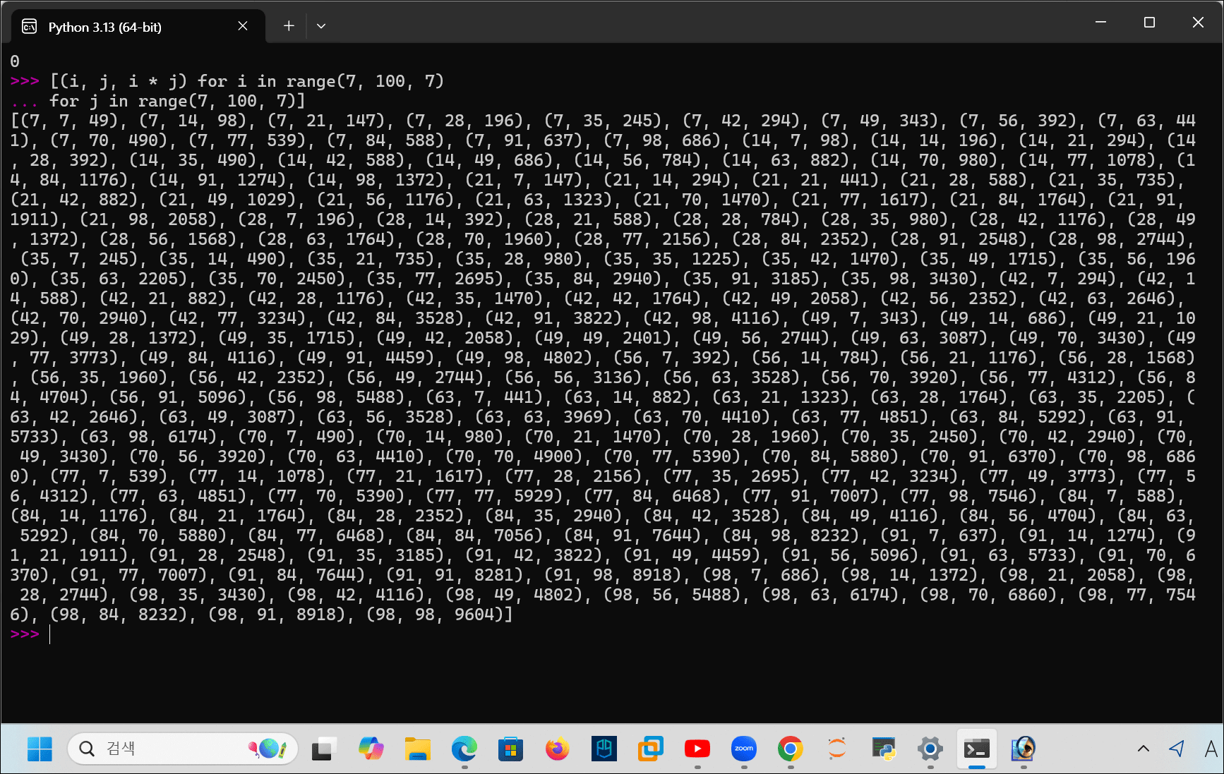 리스트 내포는 단순한 반복문뿐 아니라 수학적 조건, 필터링, 조합 계산에도 매우 효과적입니다.
