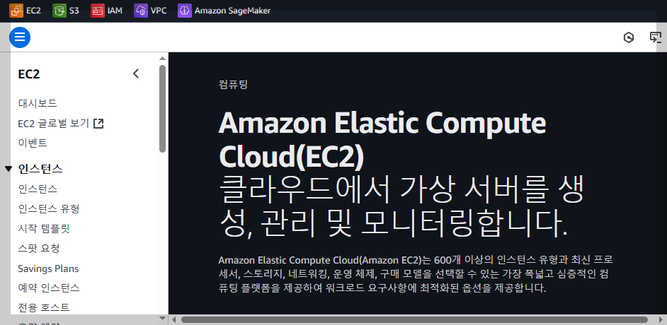 - 우리는 이 중에서 EC2(Elastic Compute Cloud)를 이용해 웹서버를 직접 운영합니다.