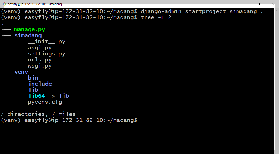 가상환경이 활성화된 상태에서 madang 디렉터리 내에서 작업합니다: