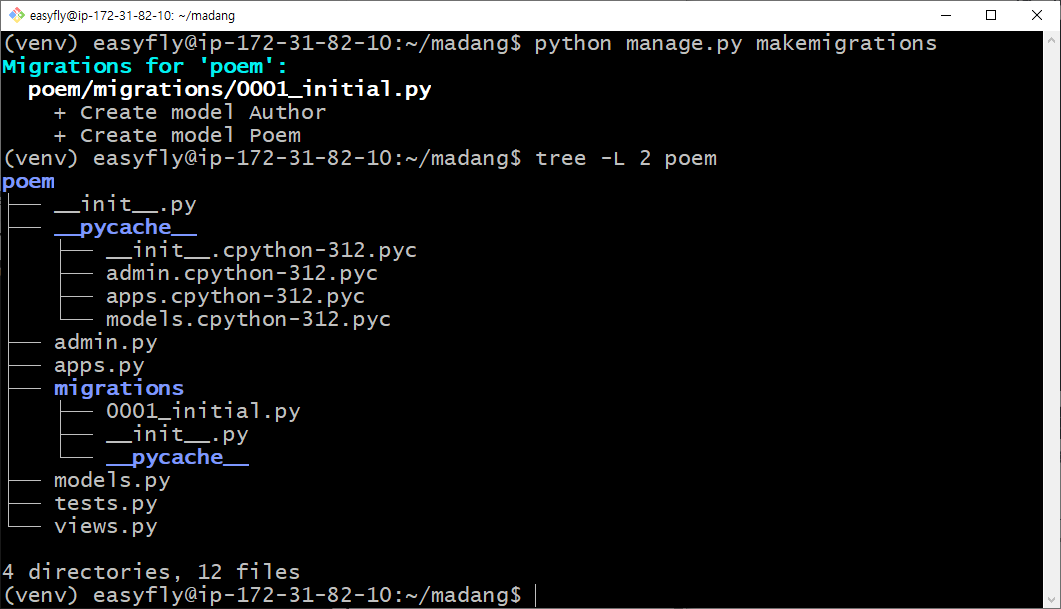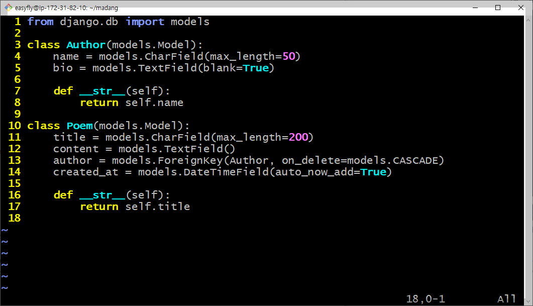 - 우리는 poem 앱 안에 작가(Author)와 시(Poem) 모델을 만들어