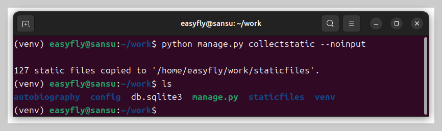 staticfiles/가 생성되면 통과.