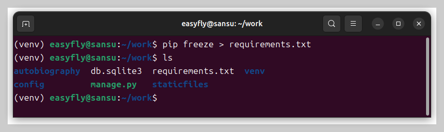 확인: requirements.txt 생성 확인.