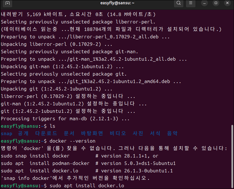 - docker --version이 “명령을 찾을 수 없음”이라면 docker.io 설치로 해결합니다.