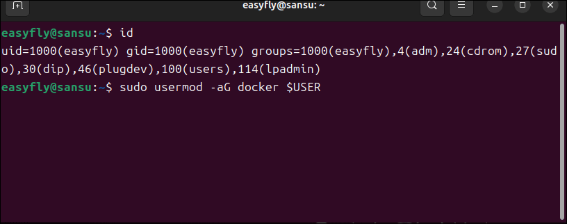 id # groups에 docker가 보이면 정상