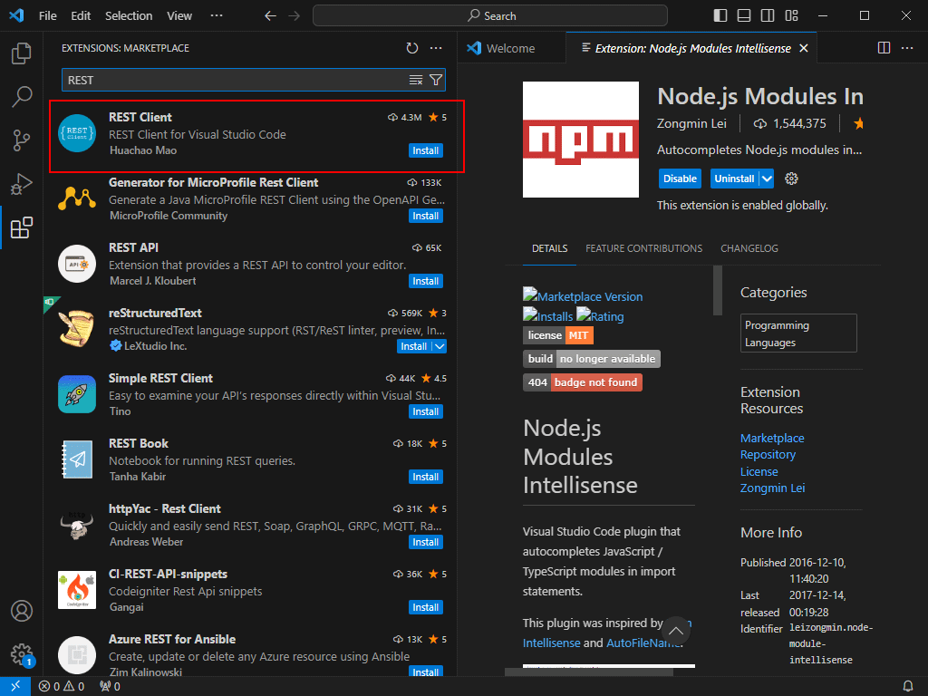 ChatGPT API를 테스트하고 디버깅할 때 HTTP 요청을 쉽게 보낼 수 있는 REST 클라이언트 확장 프로그램을 설치하는 것이 좋습니다. REST Client 확장 프로그램을 설치하면 VS Code 내에서 직접 API 요청을 작성하고 응답을 받아볼 수 있습니다.