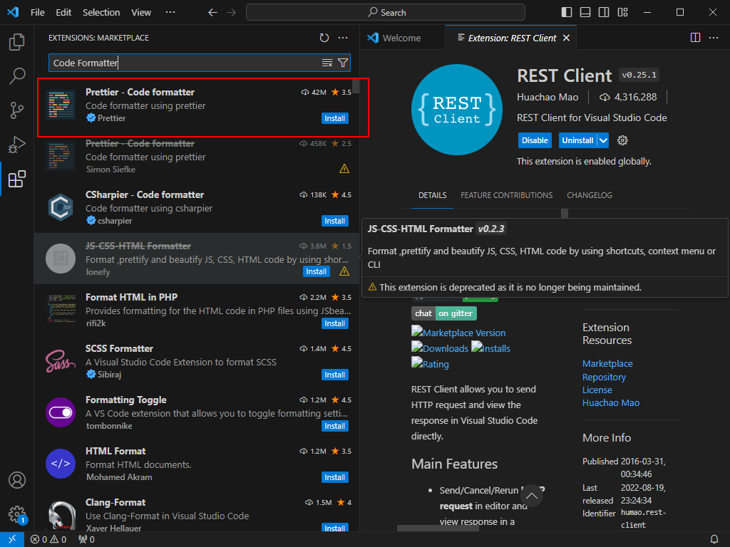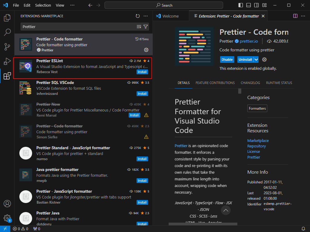 - Prettier: JavaScript, CSS, JSON 등 다양한 언어를 지원하는 인기 있는 코드 포맷터입니다. 설정 파일을 통해 포맷 규칙을 사용자 정의할 수 있으며, VS Code와 같은 텍스트 에디터와 쉽게 통합되어 사용됩니다.