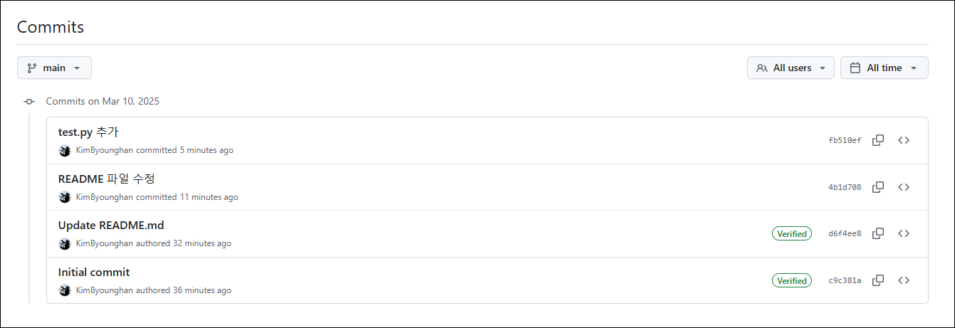 GitHub에서 커밋에 "Verified" 배지가 표시되는 이유는 해당 커밋이 GPG(GNU Privacy Guard) 키 또는 SSH 키를 사용하여 서명되었기 때문입니다.🔹 "Verified" 배지 의미해당 커밋이 GPG 또는 SSH 키를 사용해 디지털 서명(digital signature) 되었다는 뜻입니다.커밋 작성자의 GitHub 계정이 인증된 사용자임을 보장합니다.다른 사람이 해당 계정을 사칭하여 커밋하지 않았다는 것을 확인할 수 있습니다.🔹 "Verified"와 "Unverified" 차이상태 설명✅ VerifiedGPG/SSH 키로 서명되었으며, GitHub에서 신뢰할 수 있는 서명으로 확인됨⚠️ UnverifiedGPG/SSH 서명이 없거나, GitHub에서 신뢰할 수 없는 키로 서명됨..